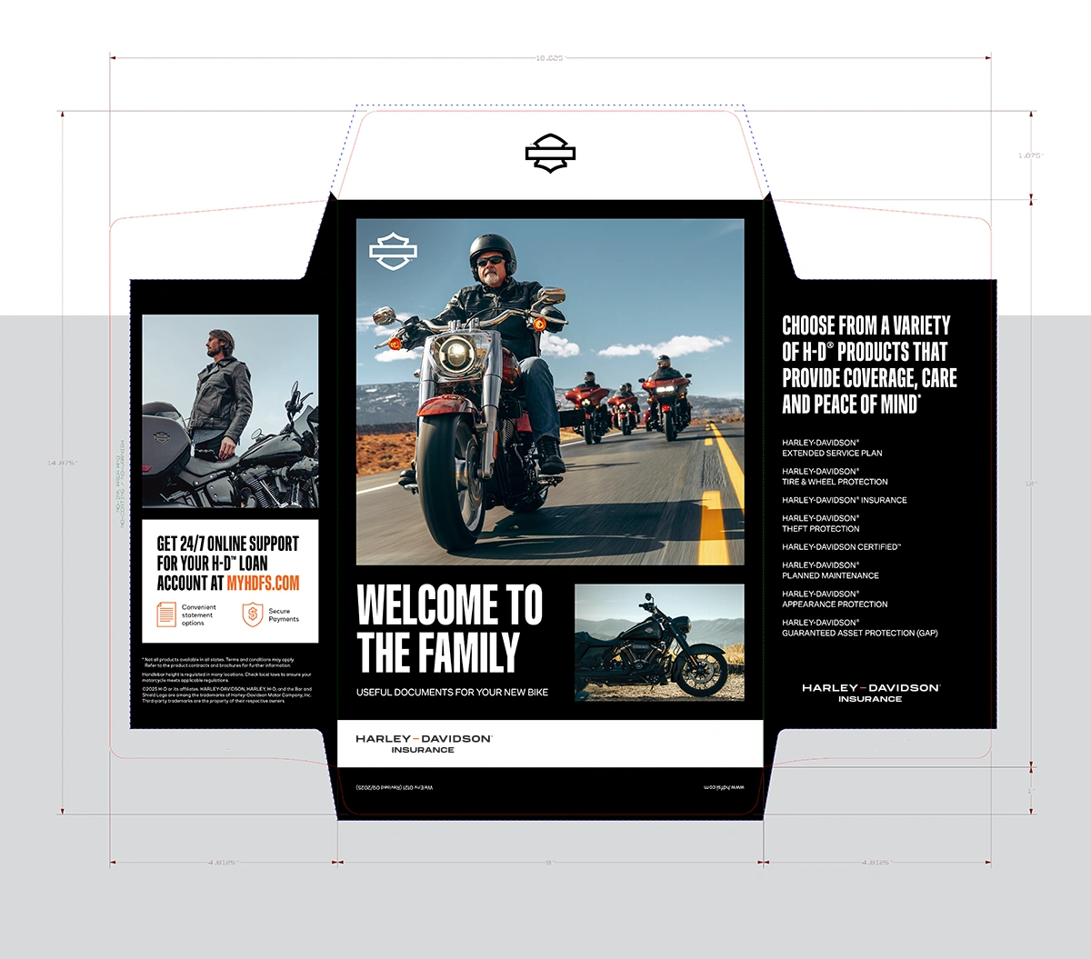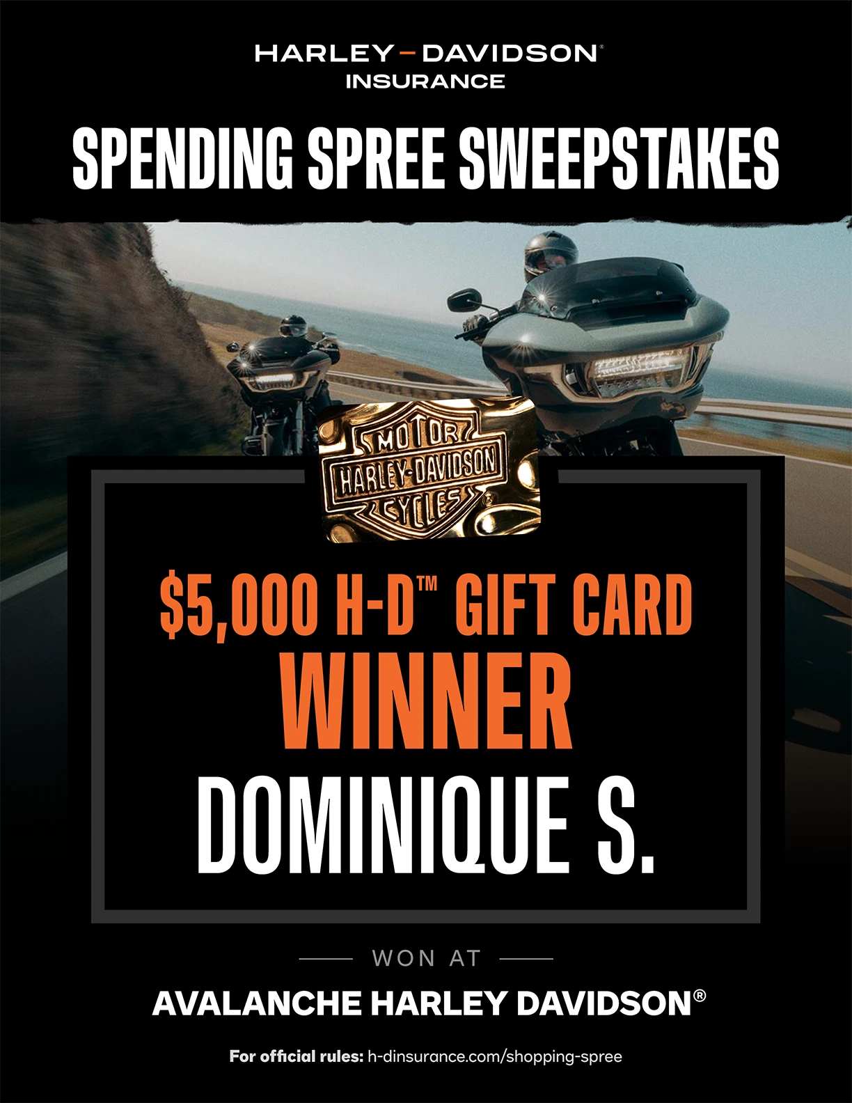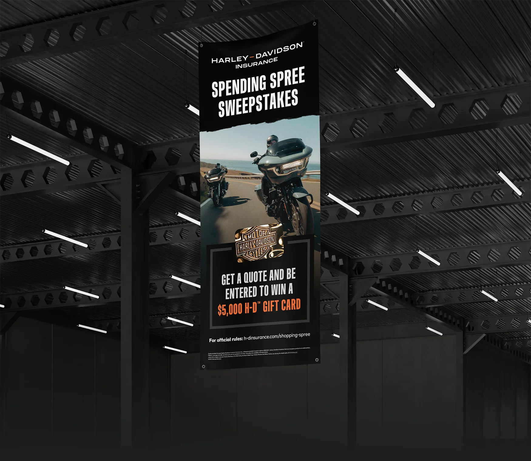 The result was a cohesive presence that reinforced the product promise across every touchpoint—online, in-store, and out on the open road. Anchored by high-impact signage and sweepstakes displays, these materials drive traction inside dealerships, while Harley‑Davidson® Insurance-branded promotional items spark interest and encourage riders to engage with salespeople on the showroom floor.